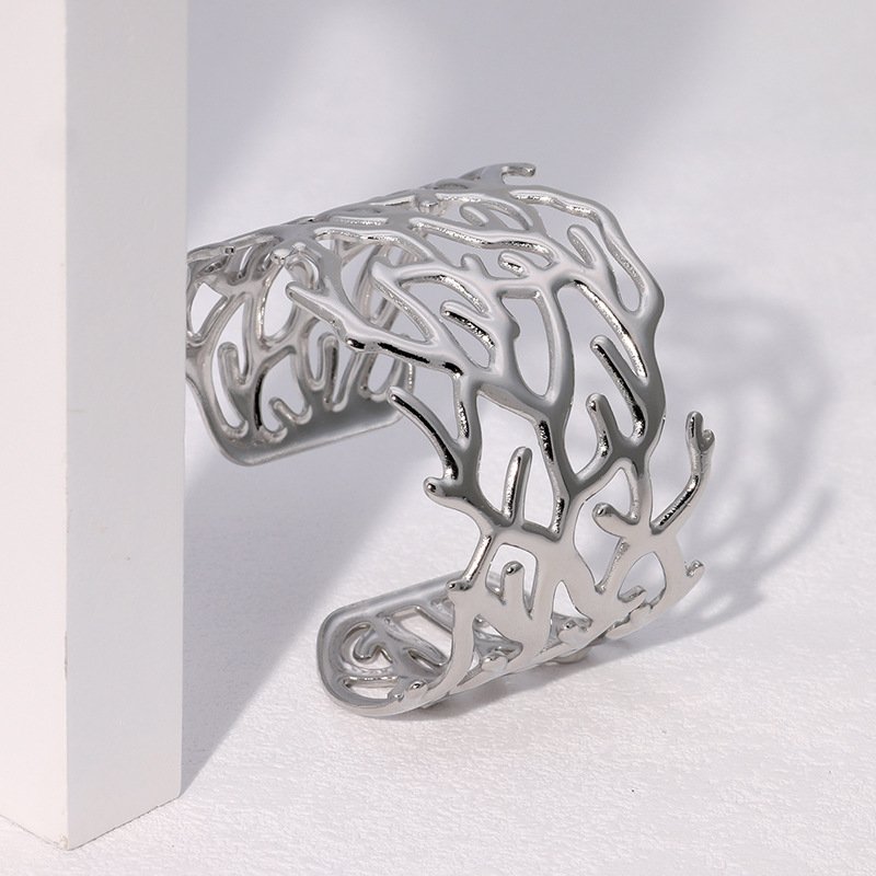The Coral Branch Silver Cuff Bracelet is a striking piece of jewelry that draws inspiration from nature’s beauty. Featuring a unique coral branch pattern, this cuff bracelet combines intricate details with a sleek silver finish, creating a bold yet sophisticated look. The open design ensures a comfortable fit, making it perfect for both casual wear and more formal occasions. With its organic aesthetic and modern style, this bracelet serves as a beautiful accessory for anyone looking to add a touch of nature-inspired elegance to their outfit.